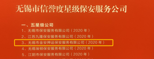 金安押運榮獲2023年度無錫市優秀保安服務公司